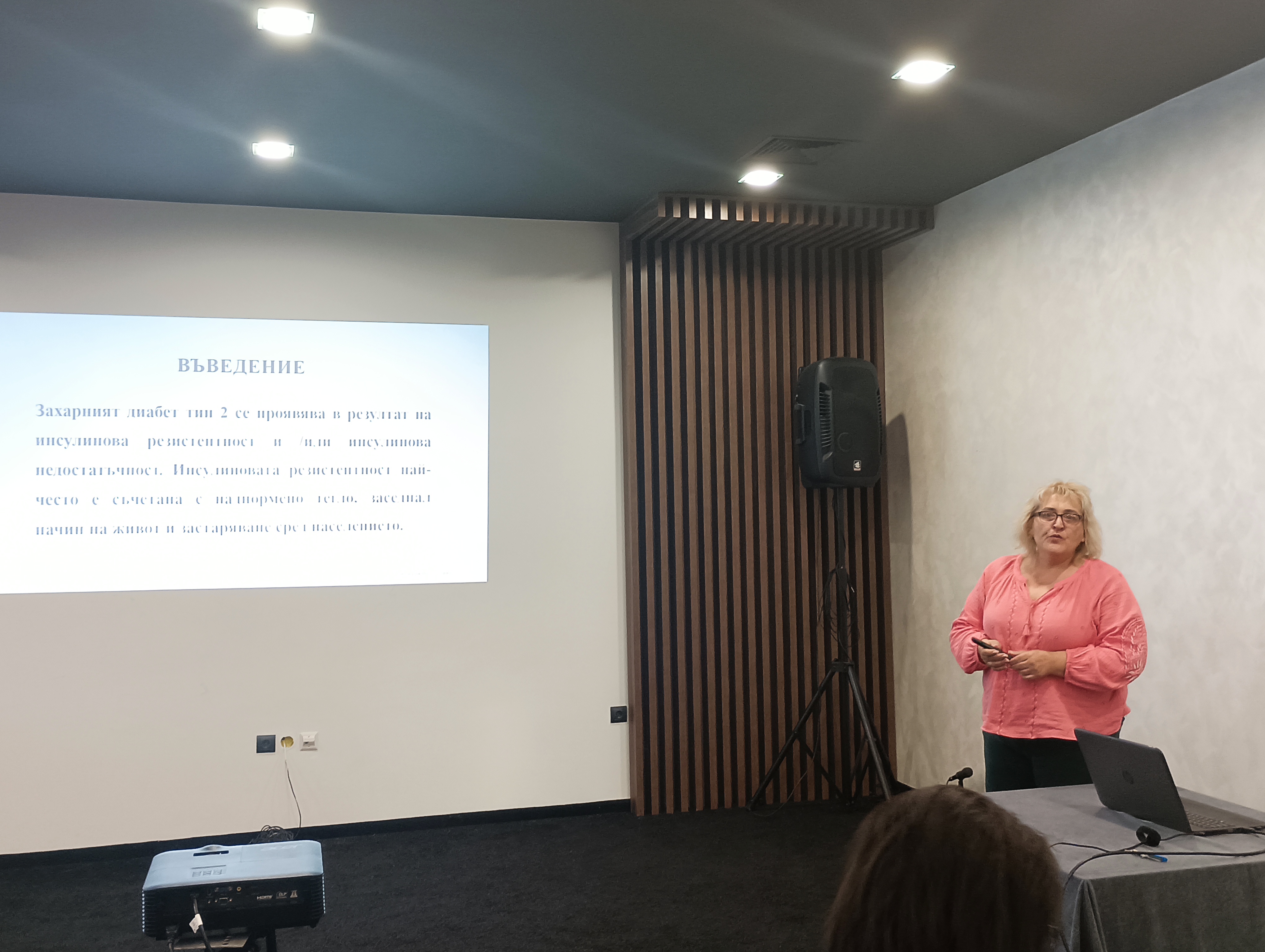 Сред останалите лектори участие взе и ас. Мирослава Илиева от катедра „Здравни грижи", Русенски университет „Ангел Кънчев" с презентация на тема „Двойна диагноза:  злоупотреба с вещества и психично здраве"