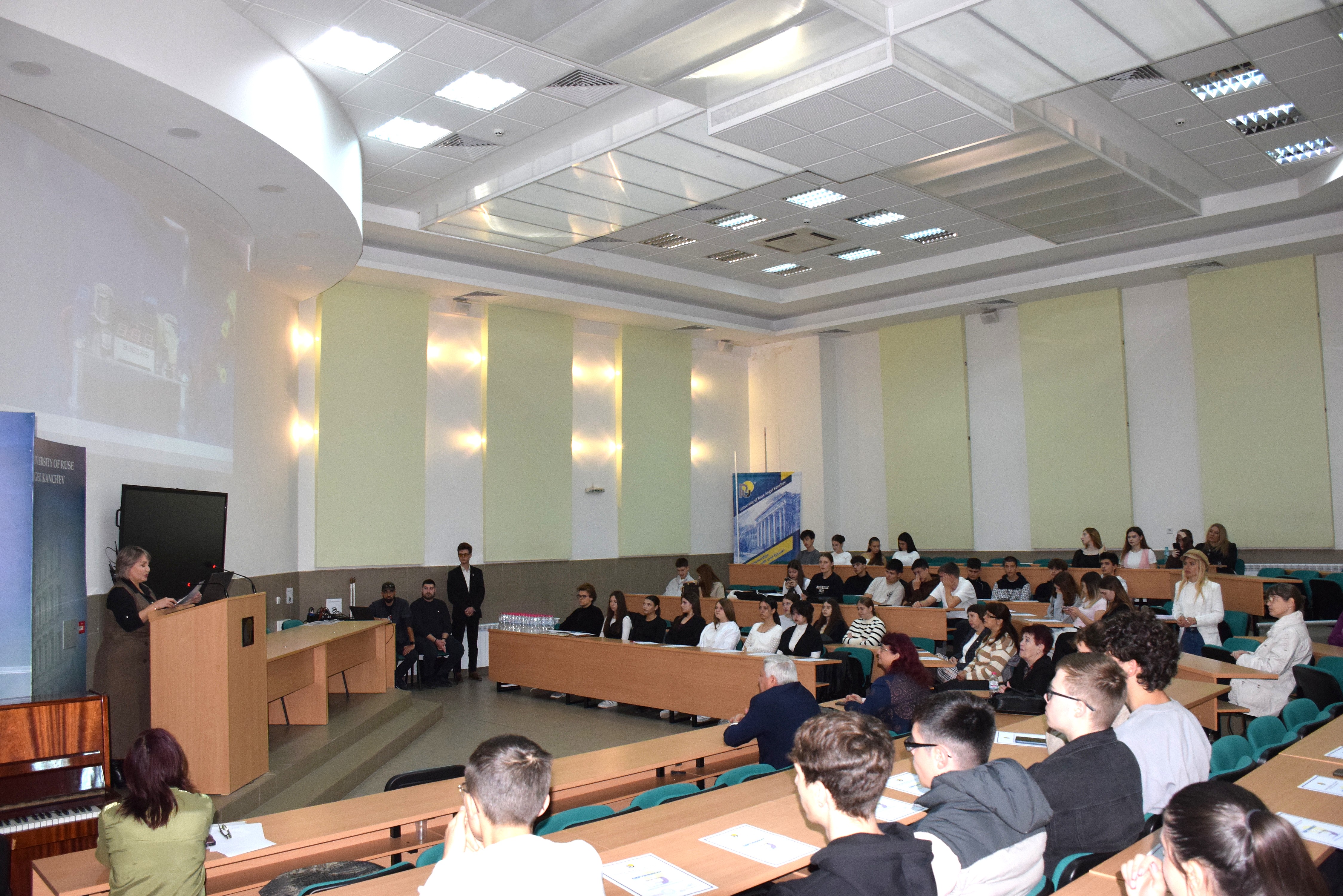 After the official greetings, the course participants were greeted by the main hosts of the training - the Department of Bulgarian language, literature, history and art, represented by the head of the department, Assoc. Prof. Mira Dushkova, PhD. She introduced the students to the course programme, which includes lectures on the Bulgarian language, literature and traditional Bulgarian arts, as well as a "historical and cultural walk" through the sights of Ruse. The training will take place between October 27 and November 2, 2025.