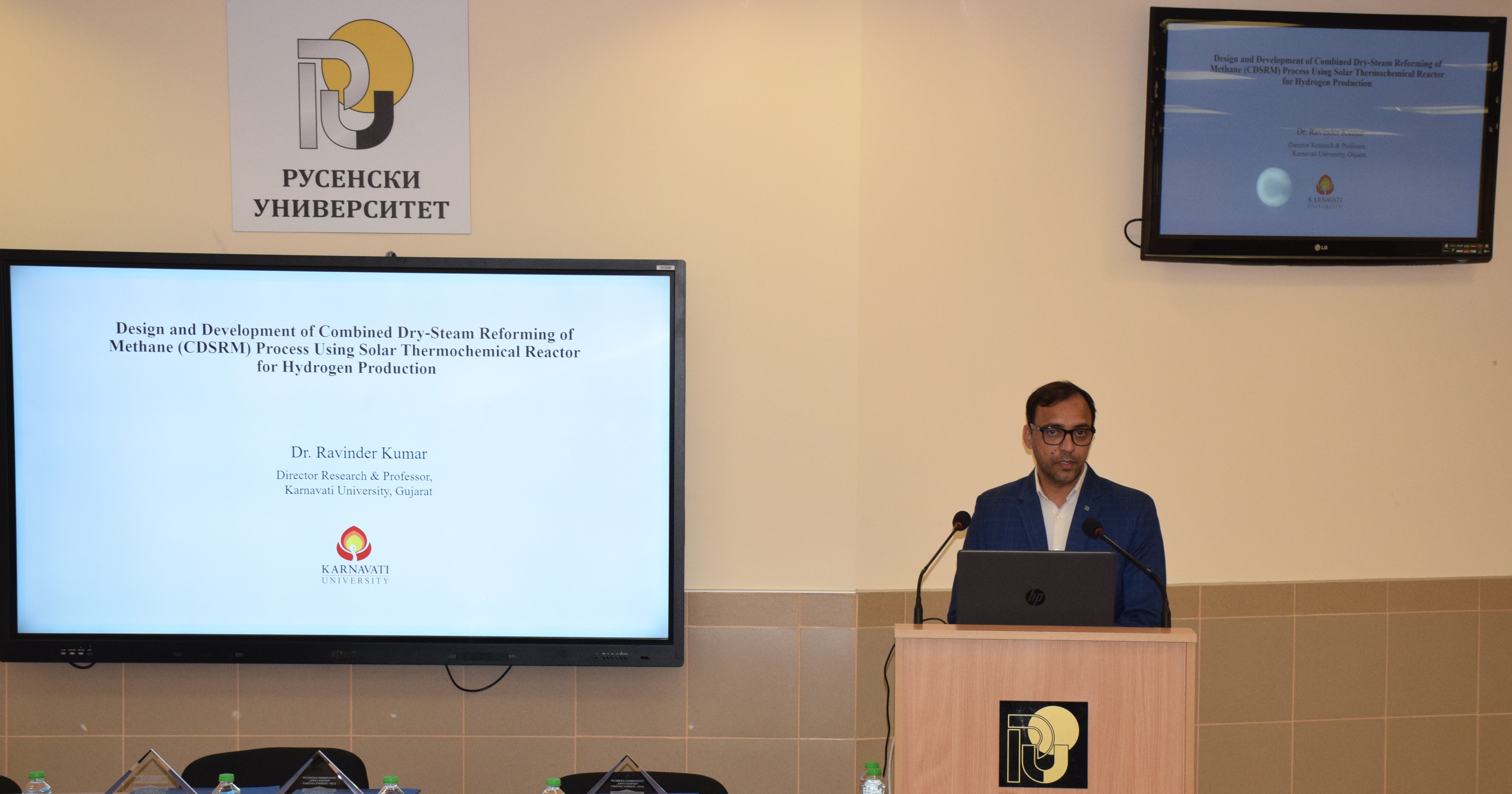 Dr. Ravinder Kumar, Director of Research at Karnavati University, India, presented the topic: "Design and development of a combined dry-steam methane reforming (CDSRM) process using a solar thermochemical reactor for hydrogen production."