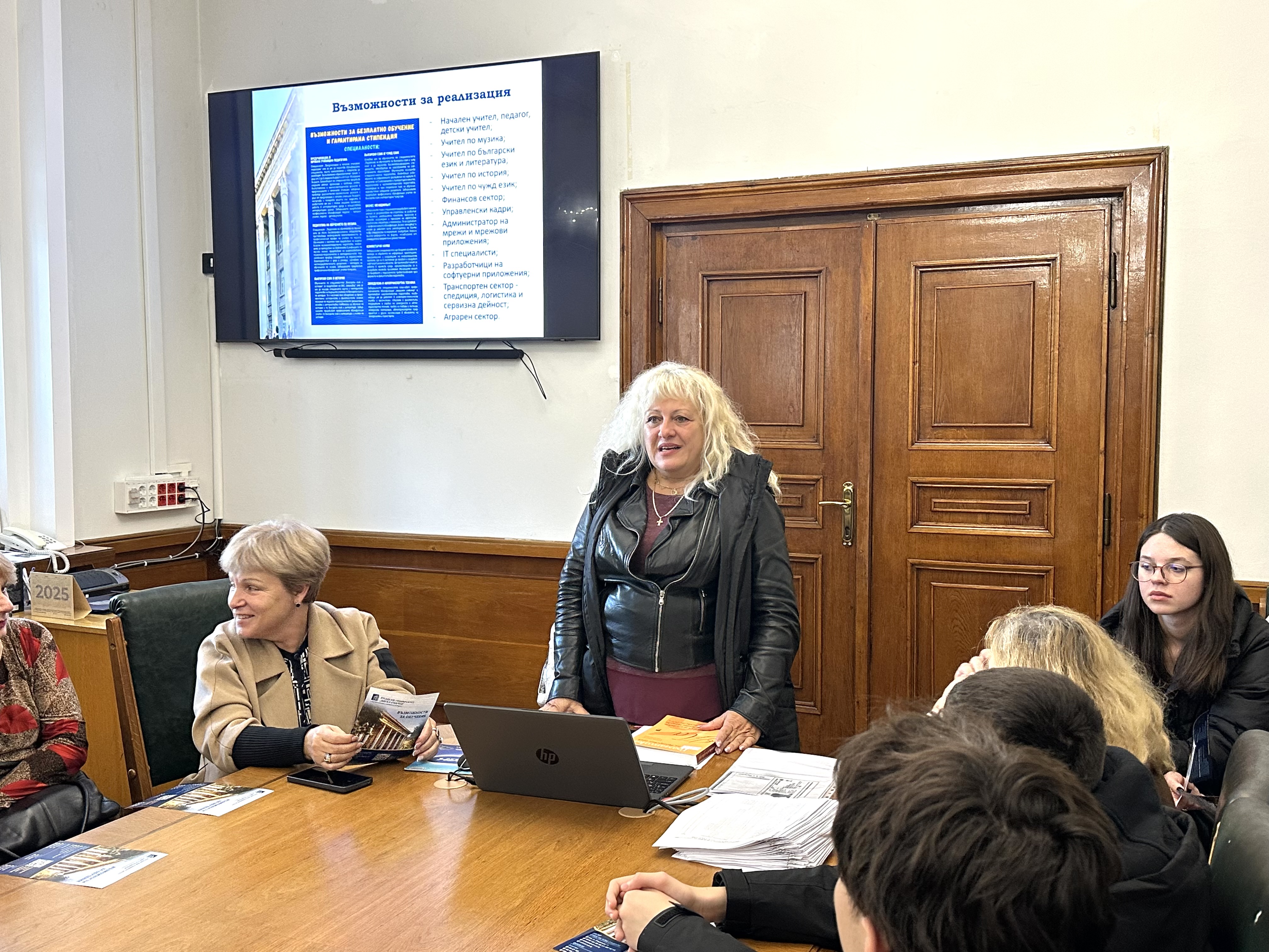 In her welcoming speech, Assoc. Prof. Atanasova, PhD expressed her delight at the opportunity for the students and their teachers to study at the University of Ruse. She encouraged them to continue boldly forward and shared that it would be an honor for the university to accept them as students.