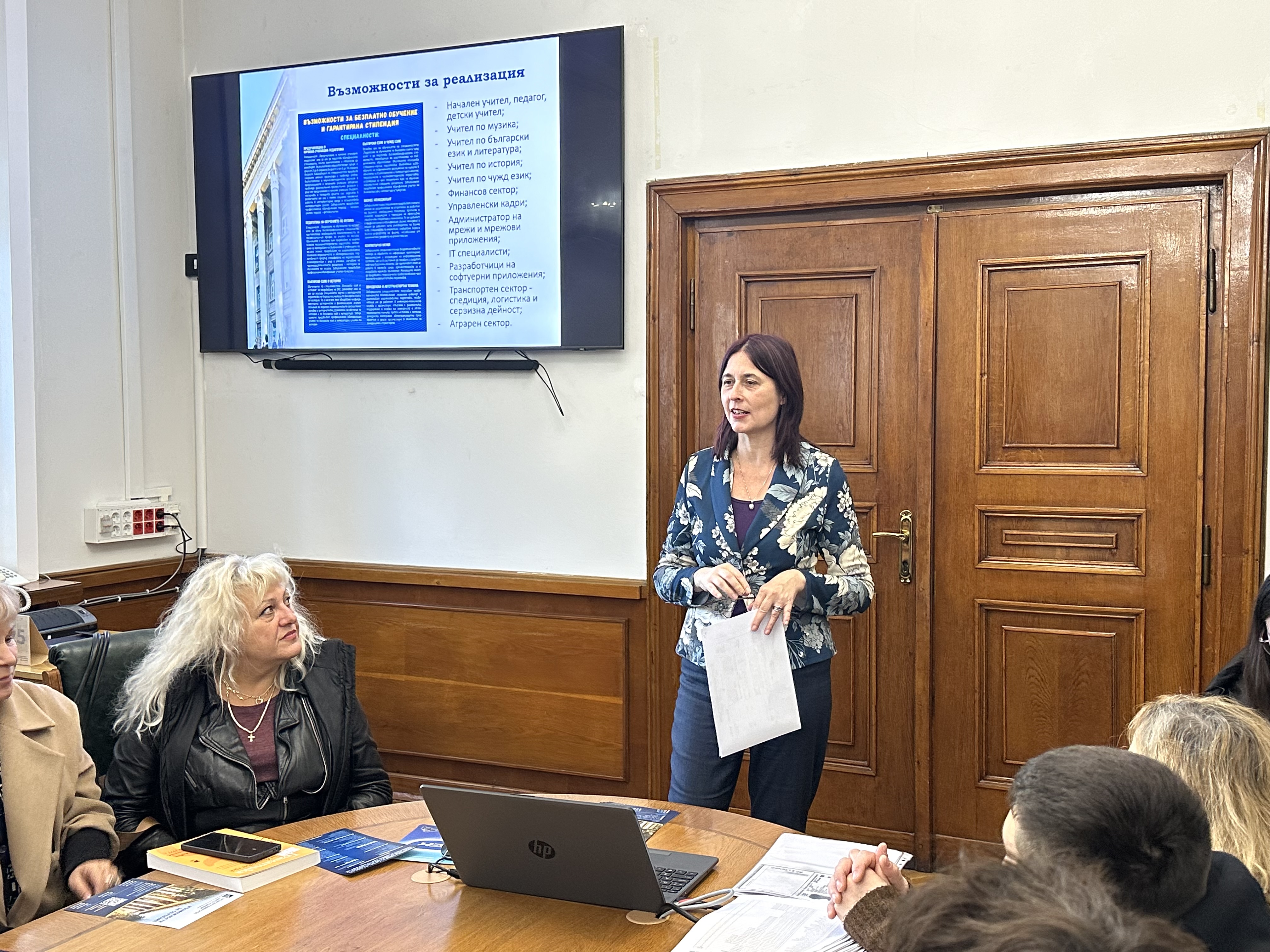The head of the Student Admissions Department, Associate Professor Boris Kostov, PhD presented the opportunities for studying at the University of Ruse, and Associate Professor Valentina Vasileva, PhD director of the University of Ruse branch in Taraclia, Moldova, presented the opportunities for studying there.
